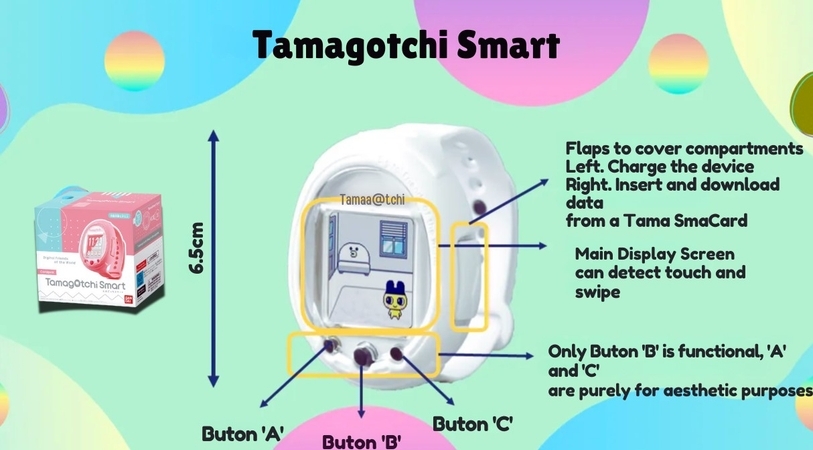 · Tamagotchi On (2019) and Tamagotchi Smart (2021) added app integrations, touch controls, and smartwatch functionality.