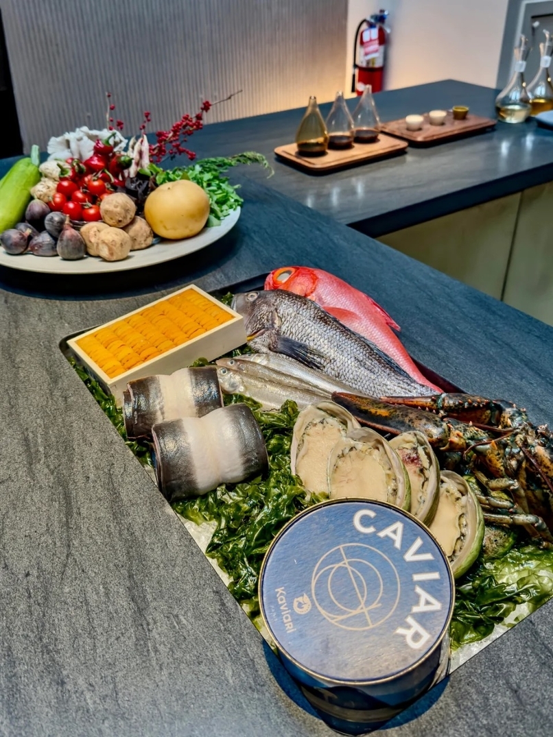 · Lightly Cooked / Main Courses: fish cooked with elegant sauces, accompaniments (vegetables, grains, reductions), sometimes with subtle international influences (e.g. Asian dressings, nori, etc.).