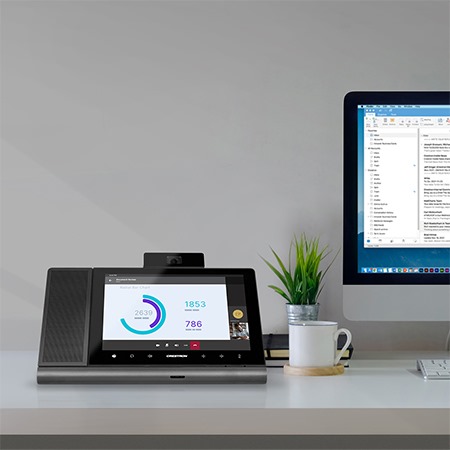 Crestron Flex Phones. High-end options primarily used in executive offices and front desks.Large displays, premium audio hardware, integration with Teams and Outlook.