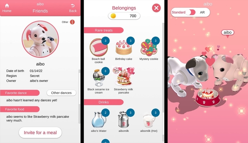 My aibo App, owners can manage settings, view aibo’s memories, feed it virtual food, and teach it new actions using the My aibo app (available on iOS and Android).