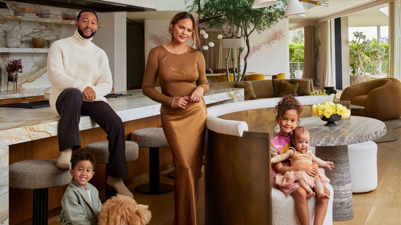 Chrissy Teigen & John Legend - Their Los Angeles terrace is a dreamy outdoor living room by the pool, filled with plush seating and cozy layers—a perfect setting for summer relaxation and gatherings.