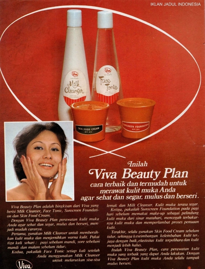 Established originally as PT General Indonesian Producing Centre, Viva was rebranded in 1964 as PT Pabrik Pharmasi Vita before becoming PT Vitapharm in 1998. Early on, Viva made history by becoming the first beauty brand in Indonesia to use the “Made in Indonesia” label—a bold statement of local pride during a time when imported products dominated the market. First Indonesian beauty brand to label “Made in Indonesia” (1970), tailored to tropical skin and signaling national pride.